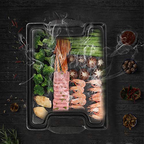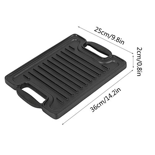Grillplaat van gietijzer, aan beide zijden bruikbaar, anti-aanbaklaag, gemakkelijk te reinigen, 36 x 25 x 2 cm.