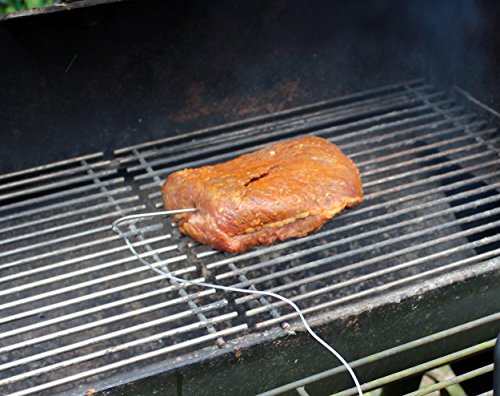 De sondes (ca. 16 cm) bestaan uit roestvrij staal. Het hittebestendige metalen vlechtwerk (ca. 100 cm) is zo dun dat je de ovendeur of het deksel van de grill en de rookoven heel normaal kunt sluiten. Ze hebben geen warmteverlies.