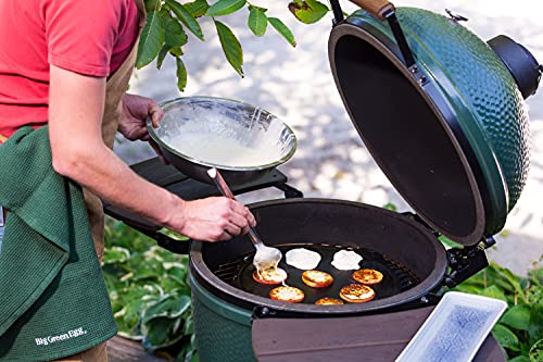 De aan beide zijden bruikbare gietijzeren grillplaat Big Green Egg maakt de probleemloze bereiding van kleine, licht afgebroken en bijzondere gerechten, zoals eierkoeken op de grill mogelijk. De gietijzeren plaat met een geribbelde en een gladde zijde heeft een diameter van 27 cm of 35 cm en past dus op de Big Green Eggs MiniMax – medium of L-XXL.