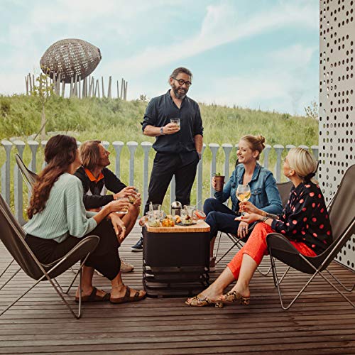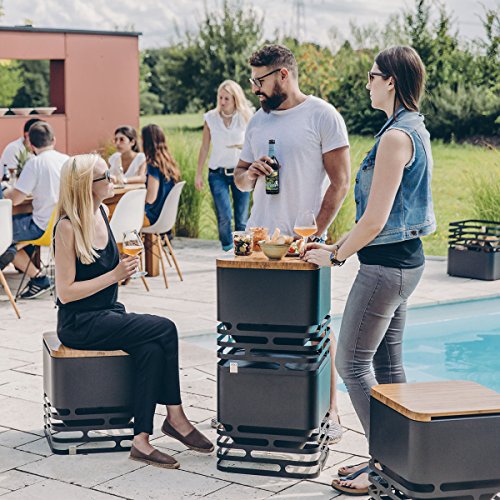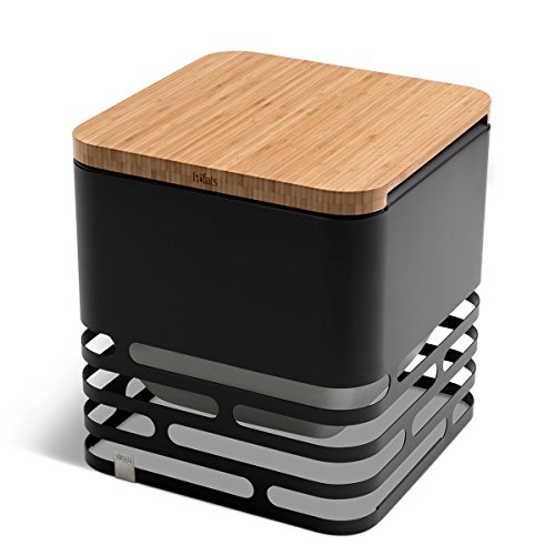 CUBE steunplank: Met de massieve bamboe steunplank kan de CUBE vuurkorf snel worden omgevormd tot een zitje, een bijzettafeltje of een bloemenkruk. Het kan ook gebruikt worden voor het werken in de keuken of bij de grill. Hang alleen op als de CUBE is afgekoeld.