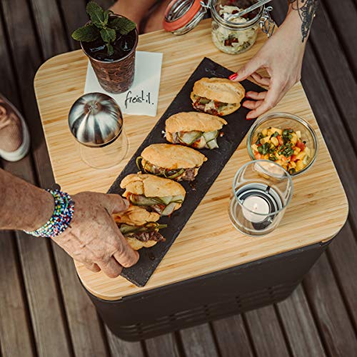 MULTIPLE BAMBOO BOARD: Naast het gebruik voor de CUBE kan het bord ook gebruikt worden als serveerplank, ontbijtplank, snackbord, snackplank, opslag en brunchplank. Het is geschikt voor elke gelegenheid – of het nu in de keuken, in de tuin, aan de eettafel of bij de barbecue is.