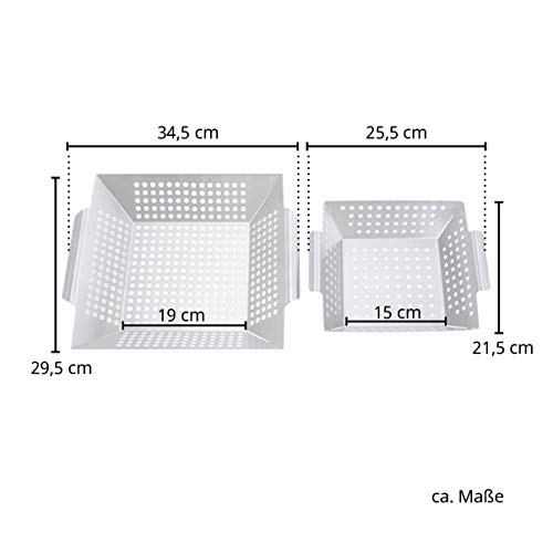 Specification: TAINO Set van 2 grillmandjes van roestvrij staal, grillschaal, groentemand, BBQ-set, 30 x 30 cm en 22 x 22 cm