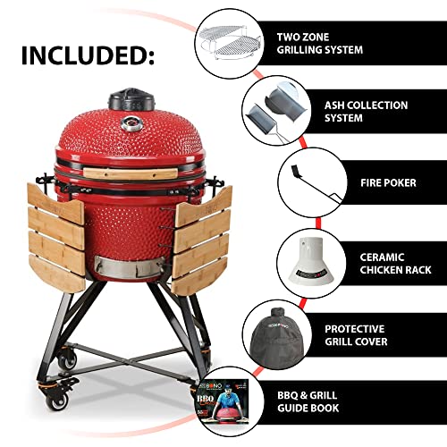 Specification: KAMADO BONO Keramische BBQ-grill, 20 inch media, rode I Kamado BBQ houtskoolgrill met Dual Zone grillsysteem I Ei BBQ…