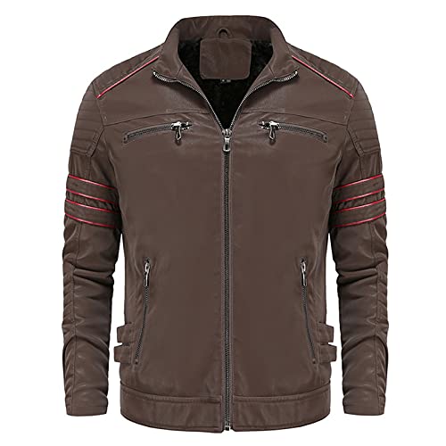 Specification: Winterparka Voor Heren,Winter Herfst Pu Leren Jas Vintage Strepen Bruin Casual Slim Bomberjack Motorjassen Voor Indoor…