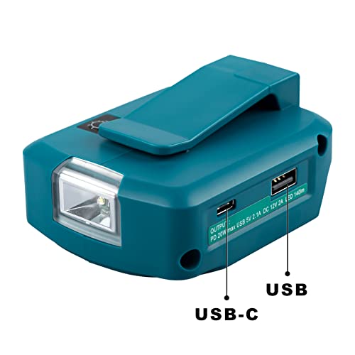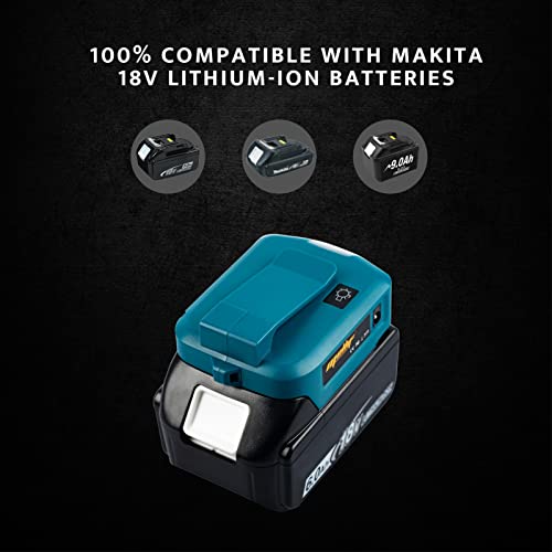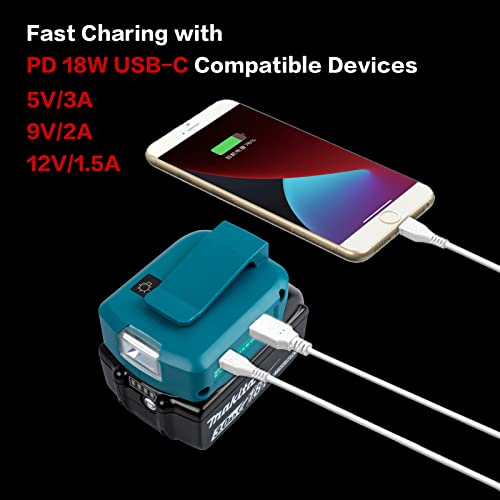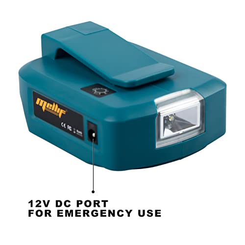 Mellif Accu-USB-adapter voor Makita 18V DEBADP05 met led-werklicht & DC 12V 2A poort & PD 18W USB C (batterij niet…