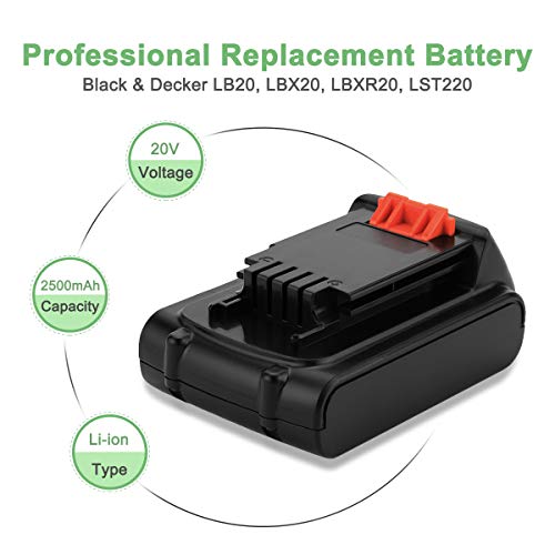 LBXR20 vervangende batterij vervangen Black & Decker LBXR20 LBXR20-OPE LB20 LBX20 LBX4020 LB2X4020-OPE. De LBXR20 20V MAX lithium-ion batterij is compatibel met alle Black & Decker 20V accugereedschappen zoals BDCDMT120, CHH2220, LDX120C, LDX120SB, LGC120, LHT2220, LST120, LST220, LSW20 enz.