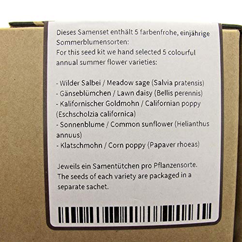 Specification: Zomer weide bloemen – zaad-cadeau set met 5 kleurrijke soorten voor een bonte bloemenweide
