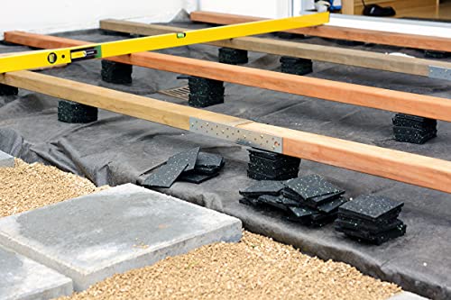De rubberen pads zorgen voor een afstand tussen de fundering en de onderconstructie. De terraspads dienen als afstandhouder en steunpunten voor de lattenconstructie. Door de pads wordt het probleem van waterophoping geminimaliseerd.