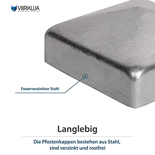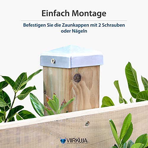 De palenkap van Viirkuja beschermt uw schutting of houten palen effectief tegen regen en andere weersomstandigheden. Dankzij de nauwkeurige pasvorm en voorgeboorde gaten kunnen de paaldoppen snel en eenvoudig worden gemonteerd. Dankzij het decoratieve thermisch verzinkte oppervlak van het materiaal zijn de doppen ook goed voor het decoreren van je schutting.