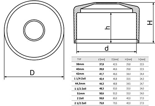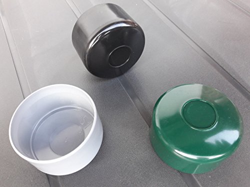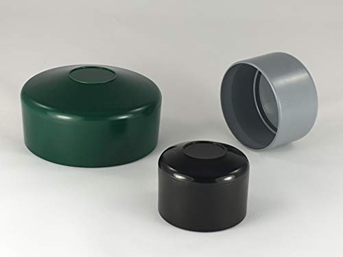 5 stuks paaldoppen/hekpalenkappen in zwart, groen, grijs of grafiet. Selecteerbare diameter (buitendiameter van de palen) 38 mm, 40 mm, 42 mm, 42,4 mm (1 1/4 inch), 44,5 mm, 48,3 mm (1 1/2 inch), 51 mm, 60,3 mm (2 inch), 76 mm (2 1/2 inch). Materiaal: Kunststof (polyethyleen). Zeer robuust en weerbestendig. Geen import uit China/Azië (productie in de EU)!! !