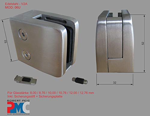 PMC Roestvrij staal Inox V2A voor vierkante buis glashouder glasklem glas klem + veiligheidsplaat MOD:06U (8,00 mm)