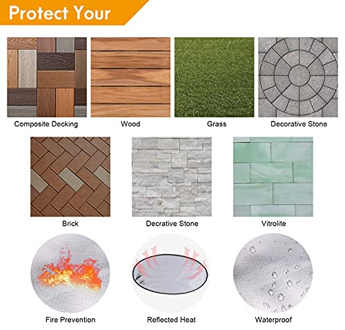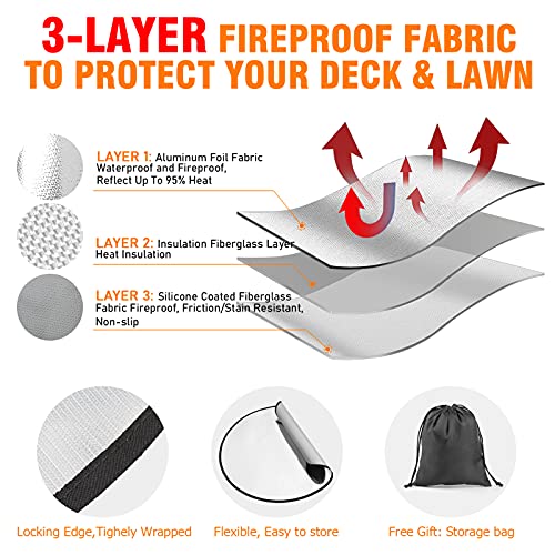 🔥【UPGRADE 3 LAAG BESCHERMING, GEAVANCEERD BRANDBESTENDIG & WATERDICHT: Vuurkorf matten voor onder vuurplaats zijn voorzien van 4-laags brandwerende stoffen, bestand tegen temperaturen tot 2000 graden Fahrenheit/1000 ℃. De 1e laag (aluminiumfolie) reflecteert tot 95% van de stralingswarmte en waterdicht. De 2e glasvezellaag, warmte-zonnestraling. De 3e laag. Siliconen gecoate vezel Glasstof) bieden fijne brandwerende en waterdichte bescherming, niet-jeukende en antislip vuurkorf mat voor grasdek, terrasplanken, terras, tuin, gazonbescherming