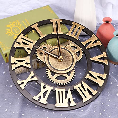 Specification: Indoor Outdoor Wandklok, 3d Retro Open Gezicht Houten Grote Outdoor Klok Rustieke Vintage Industriële Gear Klok Stille…