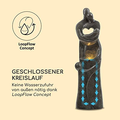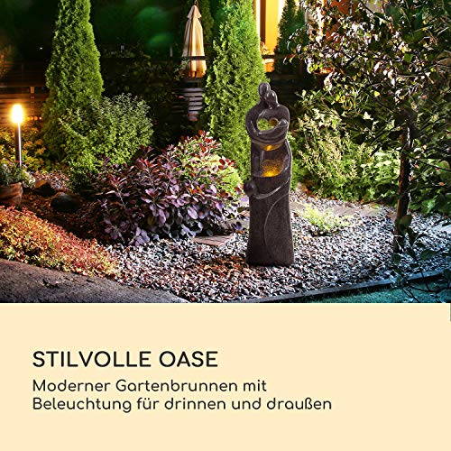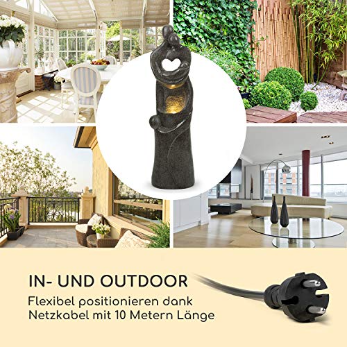MOOD LIGHT: LED-verlichting verlicht de scène op een sfeervolle manier. Dankzij het bedrieglijk echte polyresin-materiaal, dat er echt fijn graniet uitziet, is de fontein niet alleen een blikvanger, maar ook UV- en vorstbestendig en extreem bestendig.