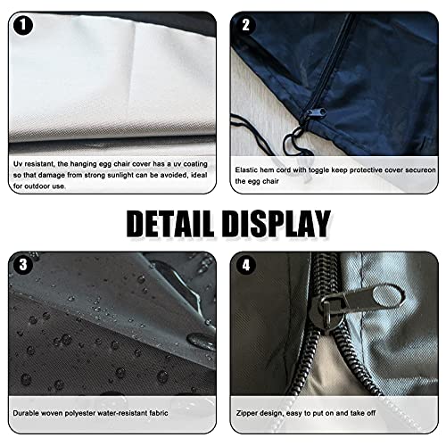 Waterdichte bescherming, duurzaam materiaal: gemaakt van 210D Oxford-stof, 190 x 115 cm, die weerbestendig en stofdicht is, kan deze eivormige stoelhoes je eivormige stoel voor buiten te beschermen tegen weersinvloeden zoals wind, zandstormen, zon en regen, UV-bestendig, temperatuurbestendig en scheurbestendig.