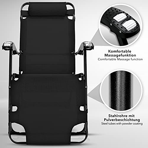 tillvex Ligstoel inklapbaar met hoofdkussen en massagefunctie, tuinligstoel verstelbaar met stalen frame, ligstoel met…