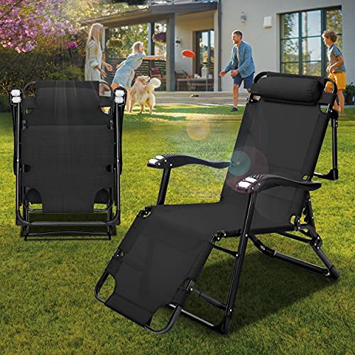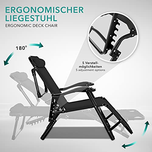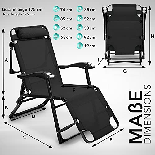 Tillvex Ligstoel, inklapbaar met hoofdkussen, tuinligstoel, verstelbaar met stalen frame, ligstoel met verstelbare rugleuning en armleuningen