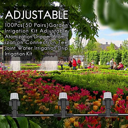 Falincon 100 stuks (50 paar) tuinirrigatieset instelbare verstuiving dripper verstuiving verbinding T-stuk water…