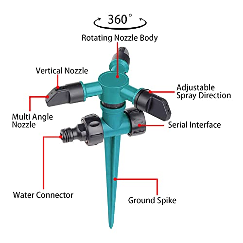 Deze sproeier heeft drie instelbare roterende armen en elke arm is uitgerust met 4 sproeiers in verschillende hoeken, om een krachtige irrigatie voor je tuin te garanderen.